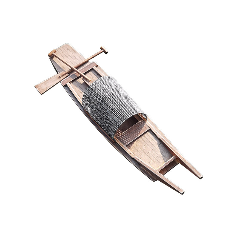 Retro solid wood outdoor small boat model fish tank fish pool building scenery decoration waterproof wood boat Jiangnan Shuang fishing boat furnishing