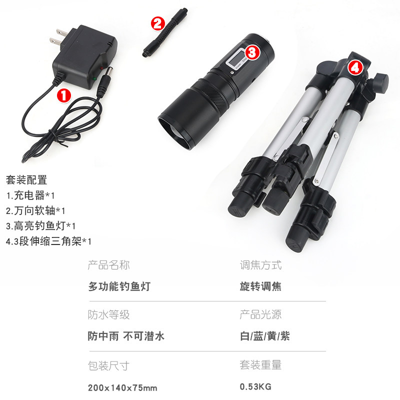 Fishing light Night fishing light Blu-ray Xenon Intense Light Equipment Hernia Purple Light Raft Fishing Bench Wild Fishing Light Blue Torch Light