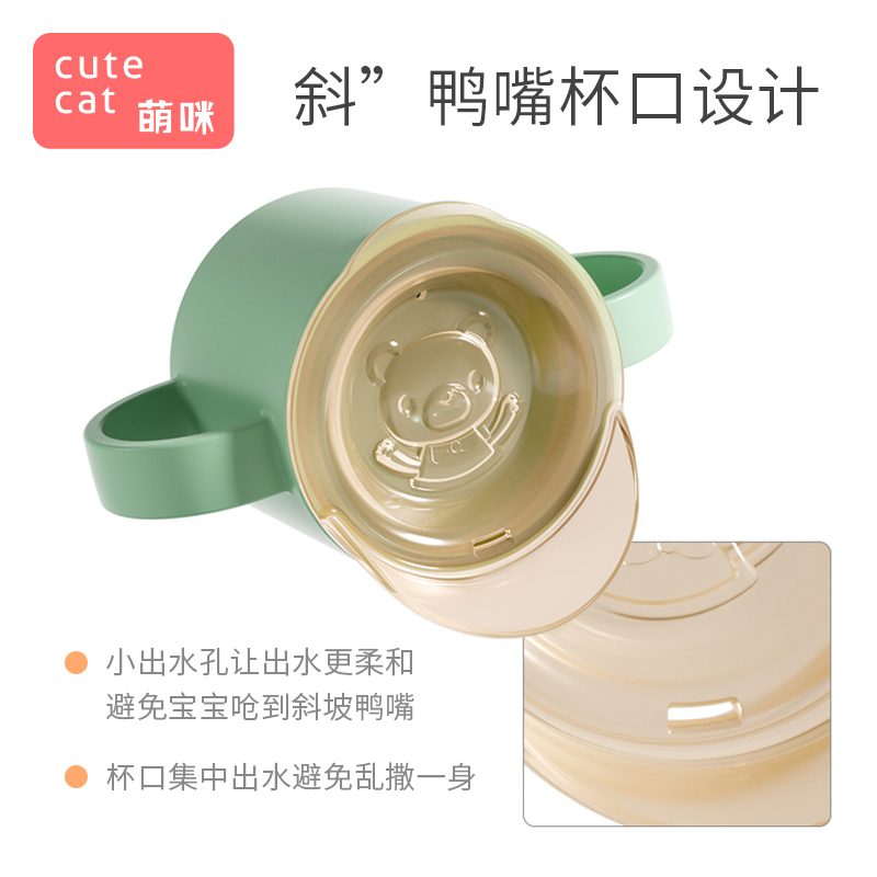 Fresh green (high temperature disinfection, anti-drop, anti-choking), elegant powder (suitable for 4 months-6 years old baby) ivory white (one-word water outlet, oblique mouth anti-choking design) Danube blue (oblique cup)