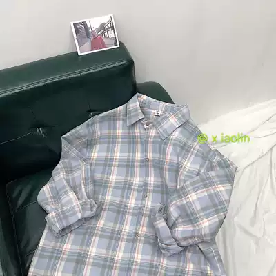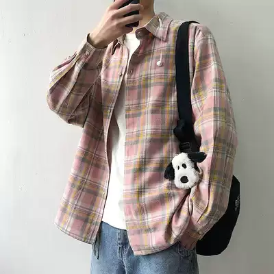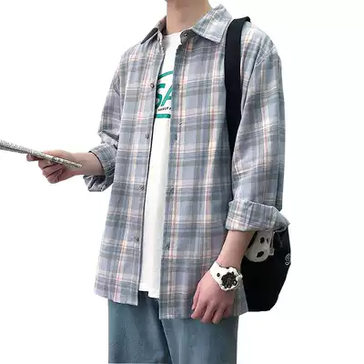 Spring and Autumn new plaid long sleeve shirt men loose ins trend Korean shirt men's Hong Kong style couple coat