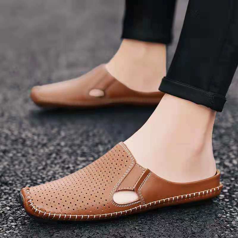2023 Breakthrough semi - slippers male baghai version of the beach shoes trend leather sandals