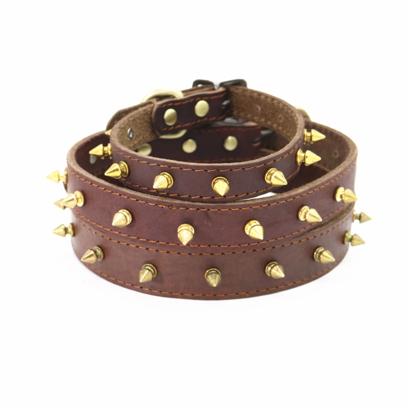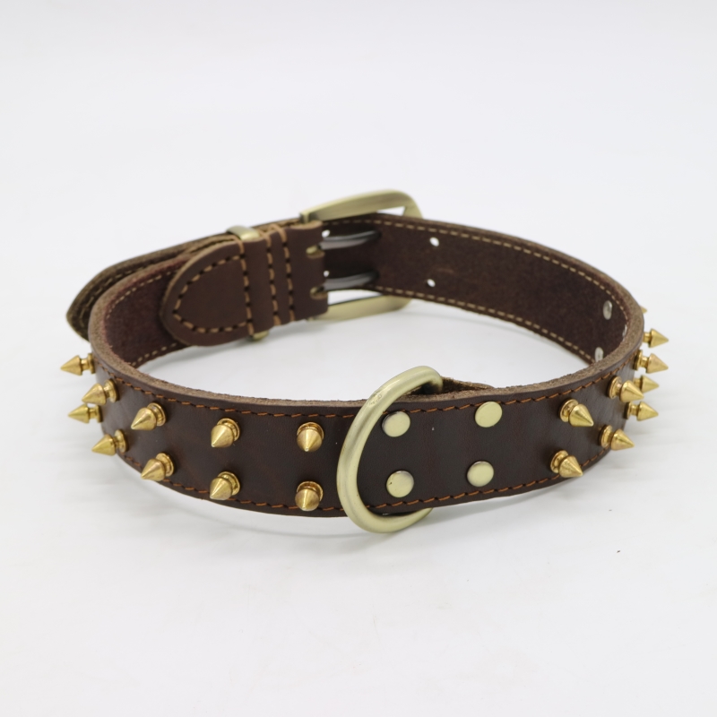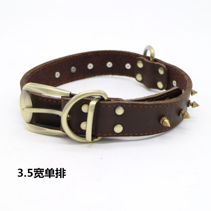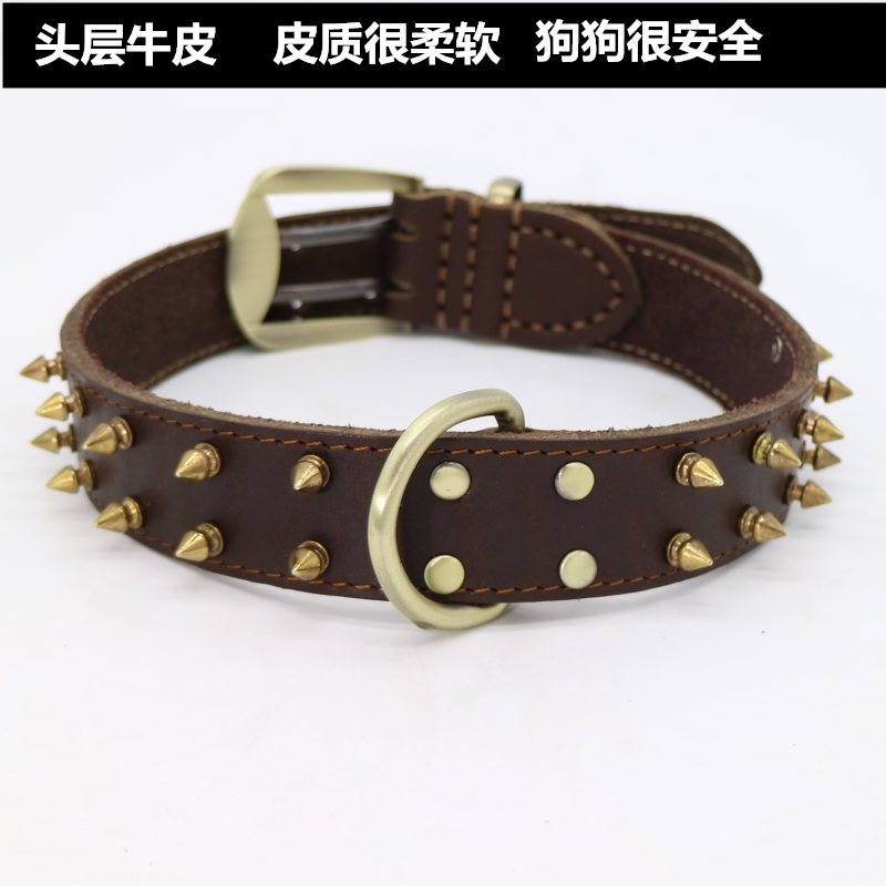 First layer cowhide dog collar large dog anti-bite spiked dog chain medium dog small golden retriever collar Samoyed collar