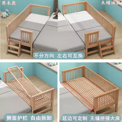 Custom solid wood children's splicing bed Large bed side widened small bed Boy girl baby bed with fence Beech bed