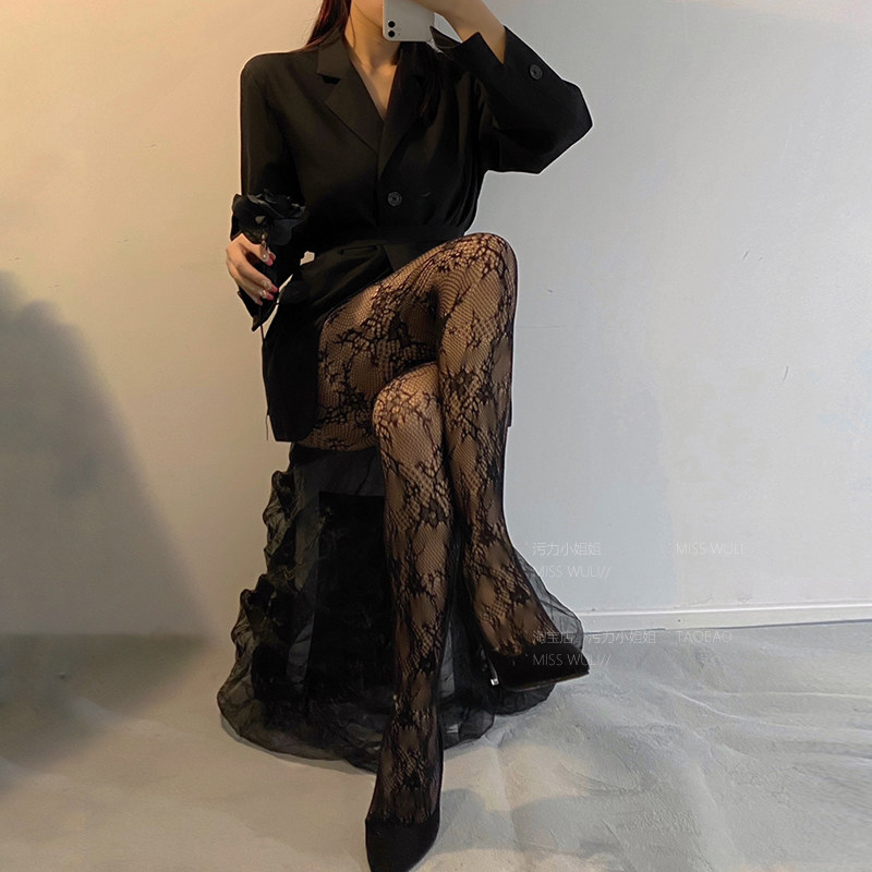 Net red ins Chains with the same kind of rose flowers web socks white retro dark black beating underpants socks silk stockings