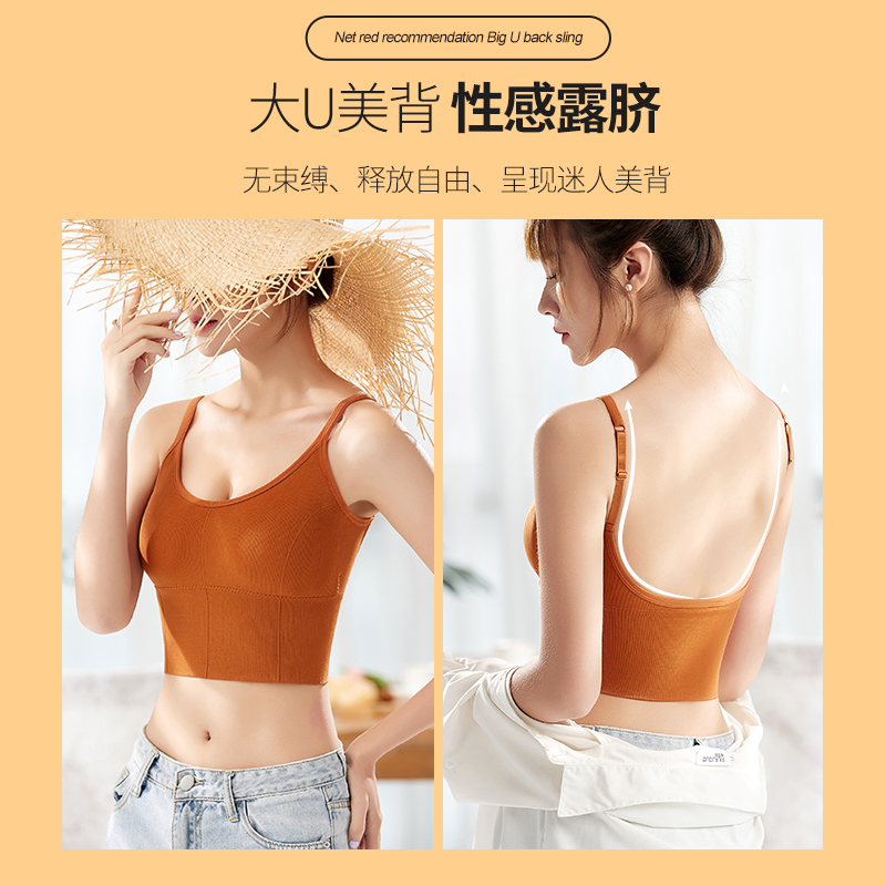 Beauty back underwear net red popular Kaka U-shaped thin section with tube top all-in-one bra camisole female summer