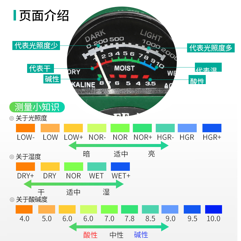 High precision Home Orchid Multi-meat Moisture Ph Tester for Soil Acid PH Gardening Flowers And Grass Moisture Detector