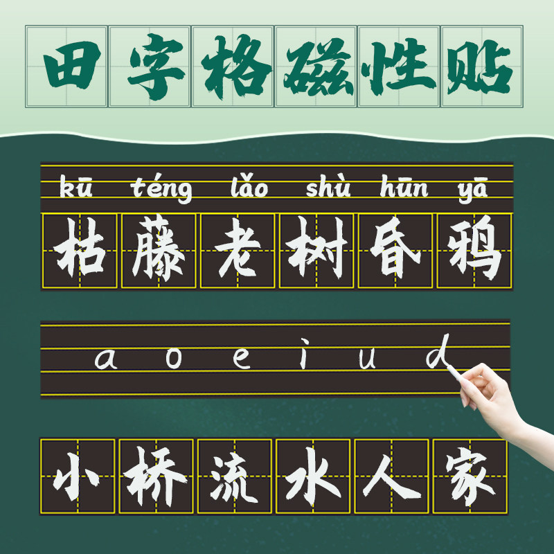(Supported to be made) single lattice large number 20cm 30cm 40cm 40cm character magnetic chalkboard paste teaching calligraphy Thickened Frosted Field Character gamieg magnet sticker soft magnet sticker teaching aids