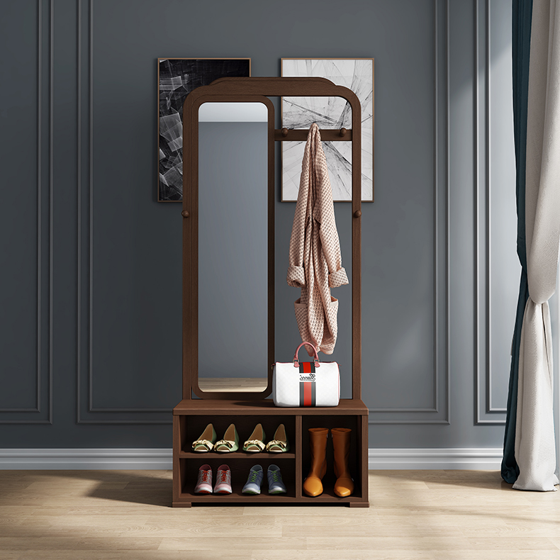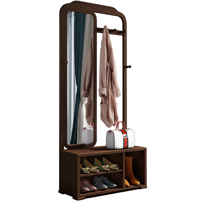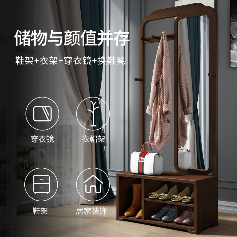 Solid wood shoe stool shoe cabinet multifunctional full-body mirror with storage cabinet new Chinese style hanger shoe rack hallway cabinet entrance cabinet