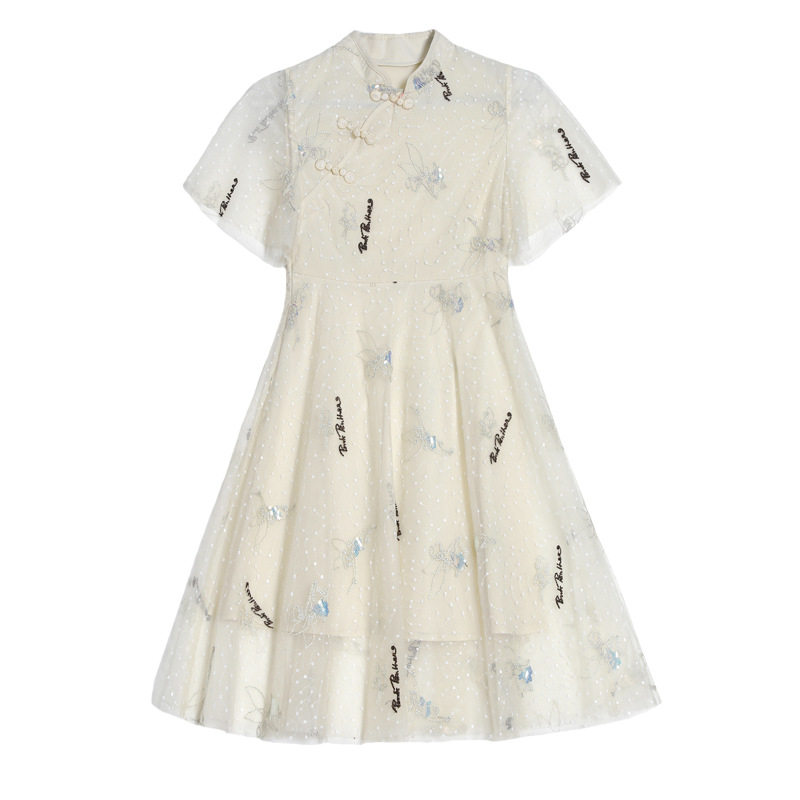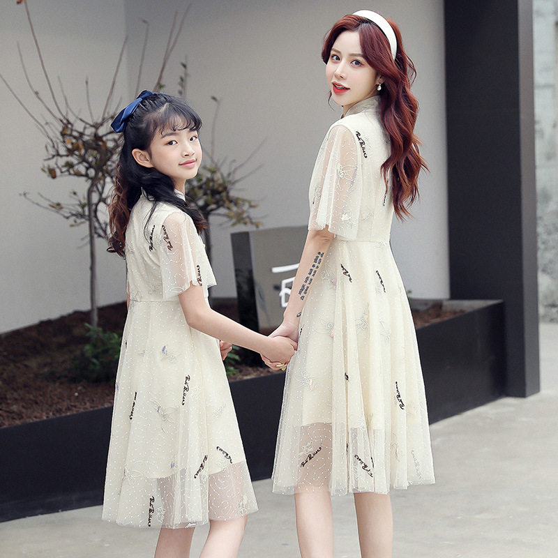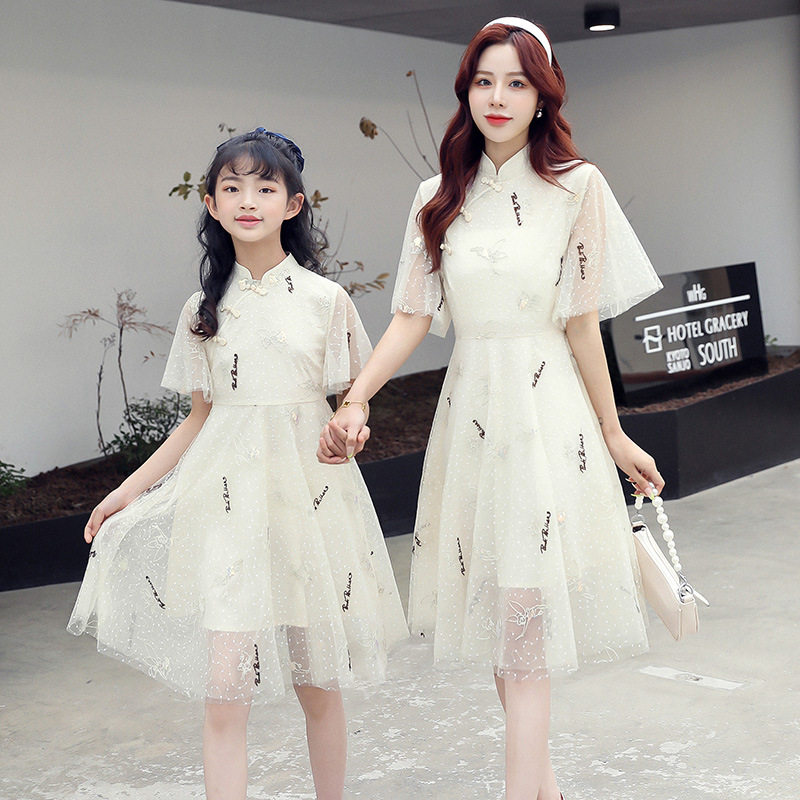 National tide parent-child dress cheongsam improved version of mother and daughter dress Western style dress 2021 new summer thin section mesh buckle