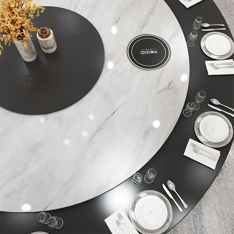 Hotel dining table Large round table Electric marble turntable with induction stove 15 20 people Hotel dining room box with 2 meters