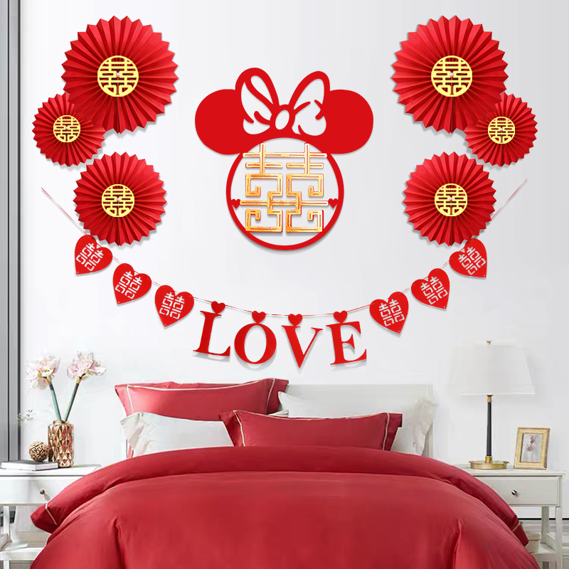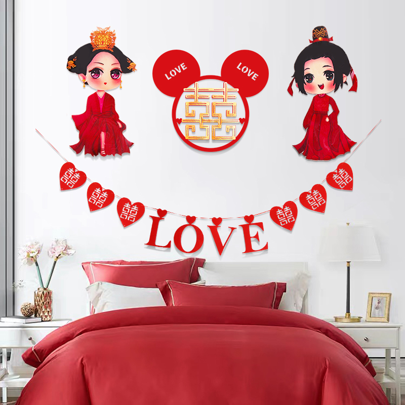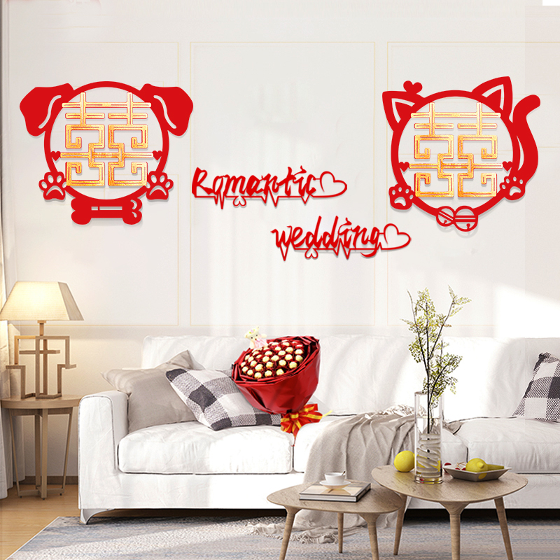 Wedding wedding supplies large flocking cloth happy word door stickers Chinese style wedding room layout bedside background wall decoration