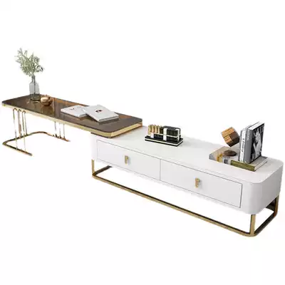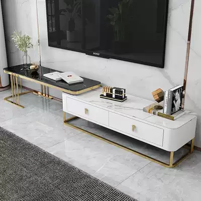 Light luxury Rock board TV cabinet modern simple small apartment Italian telescopic tempered glass TV cabinet tea table combination