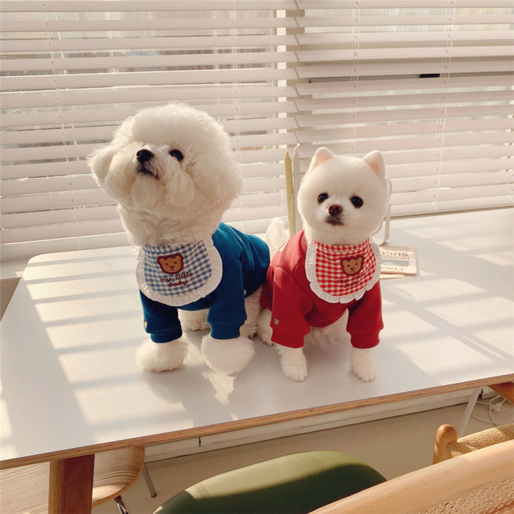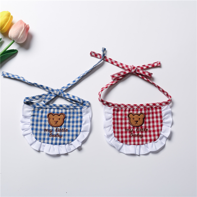 Korean Cute Plaid Embroidered Dogs Pet Containment scarves with cubs than bear Boometeddy kitty Kitty Scarf-Taobao