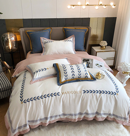 Simple hotel style 60 long-staple cotton satin four-piece group cotton pure cotton quilt cover printing spring and summer bedding