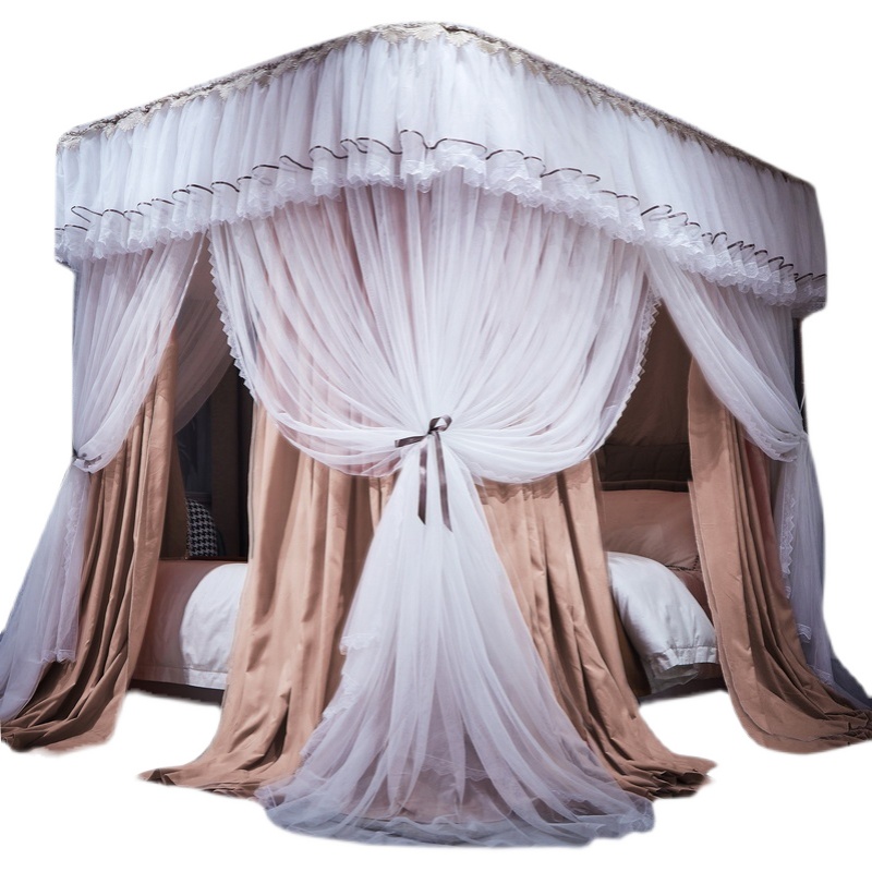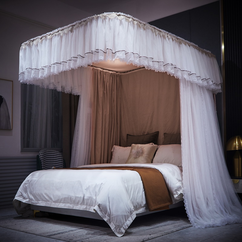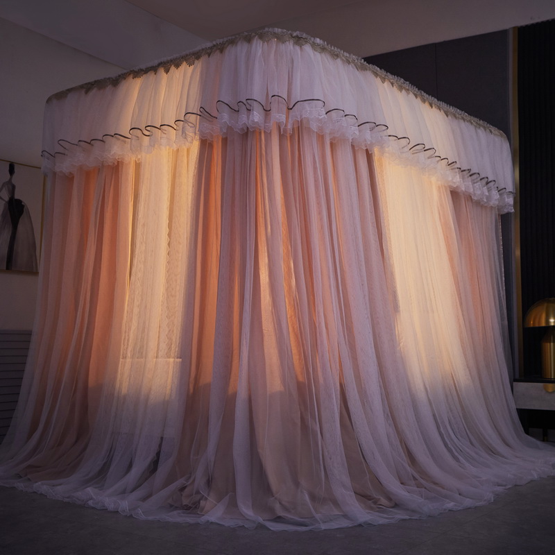 2022 New high-end domestic mosquito net shading U-type track 3 bed curtain one-piece princess palace bed mantle floor