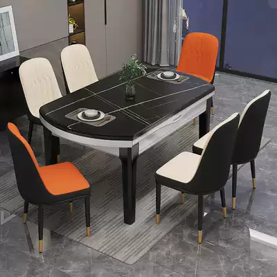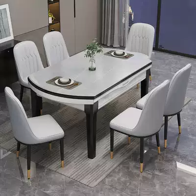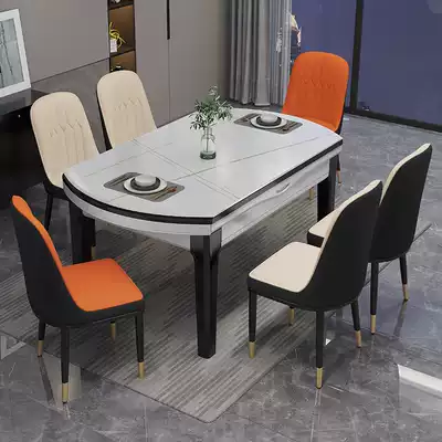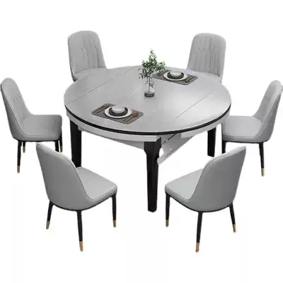 Light luxury Rock board dining table and chair combination solid wood household small apartment modern simple telescopic variable round table folding table