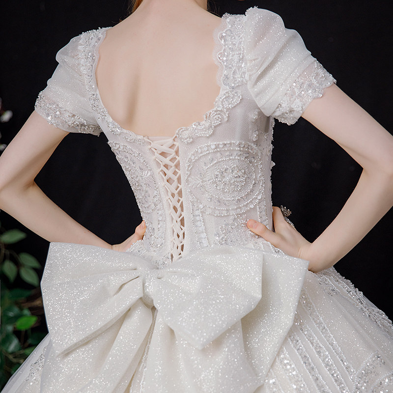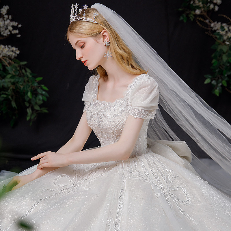 Main dress dress 2022 new small - sized bride drag tail high court bubble bubble cuff heavy woman