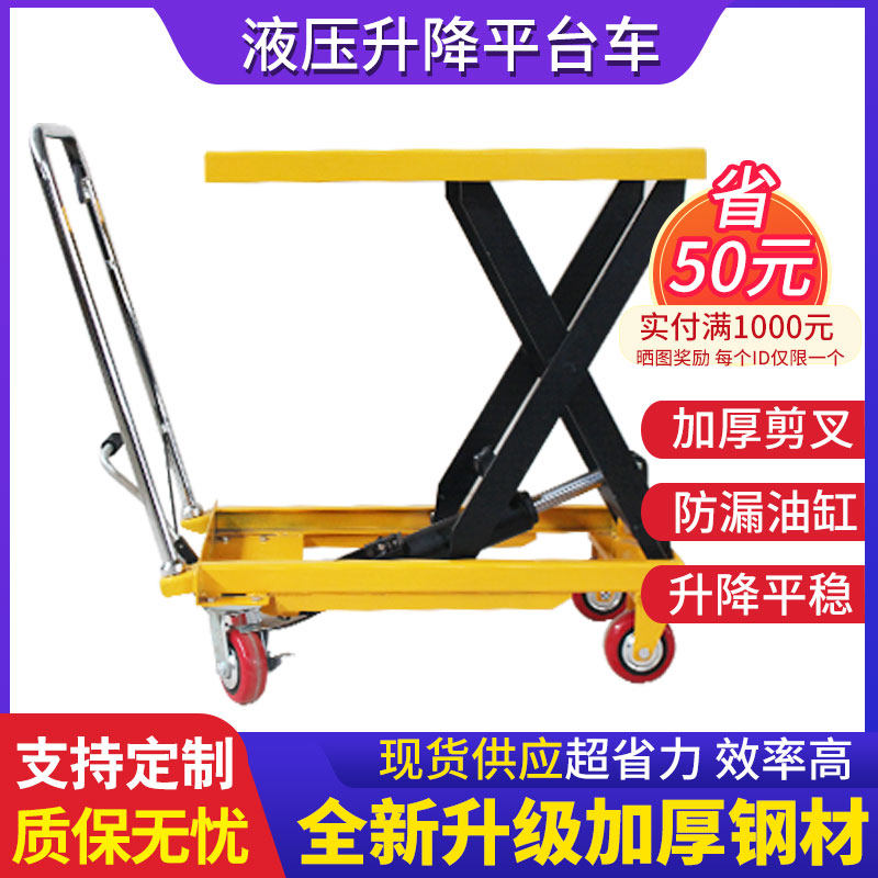 Manual hydraulic lifting platform car 1 ton electric lifting table mobile lift trolley flat pile high machine