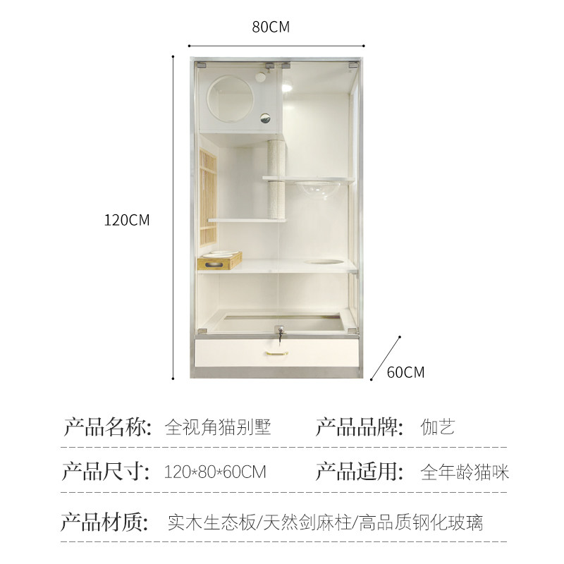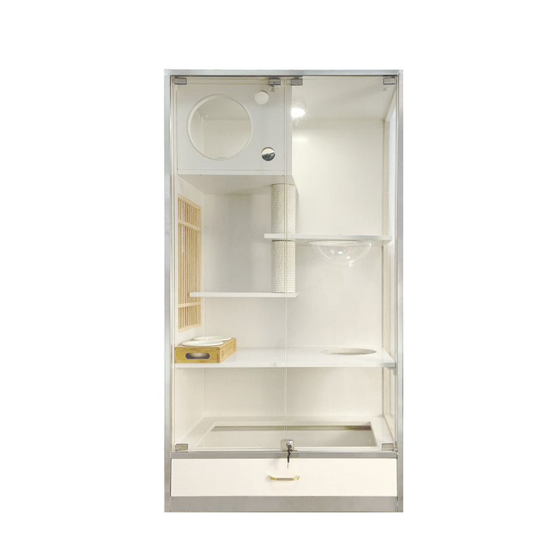 Panoramic Log Environmentally Friendly Cat Villa Tempered Glass Transparent Luxury Solid Wood Cat Cabinet Household Cattery Cat Coffee Showcase