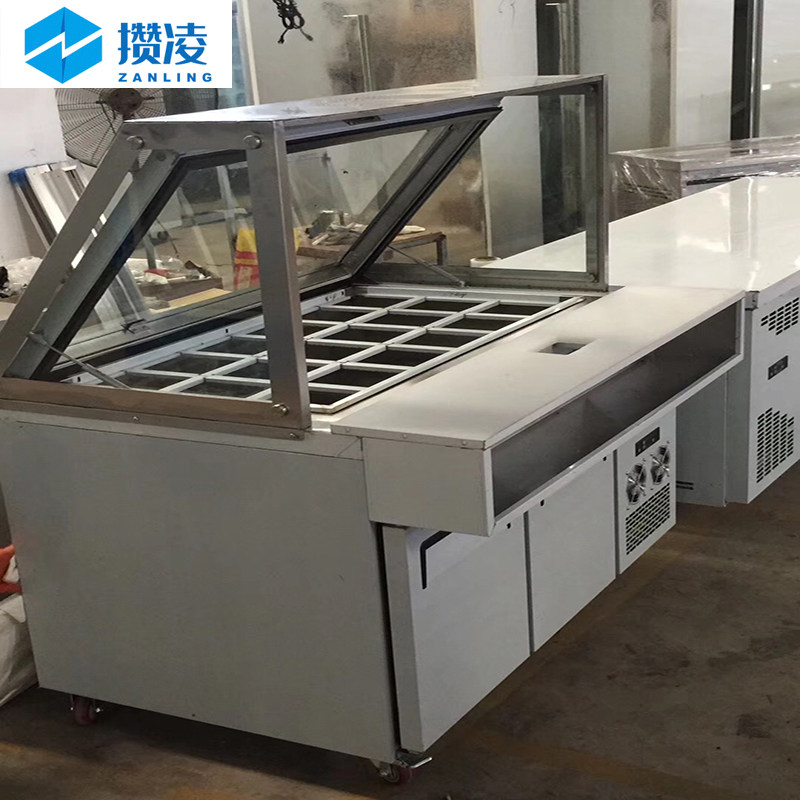 Race Thyme Cylinder Salad Cabinet Commercial Air-cooled Pizza Operation Table Slotting Sauce Platform Snow Cabinet Fruit Bailing Freezer