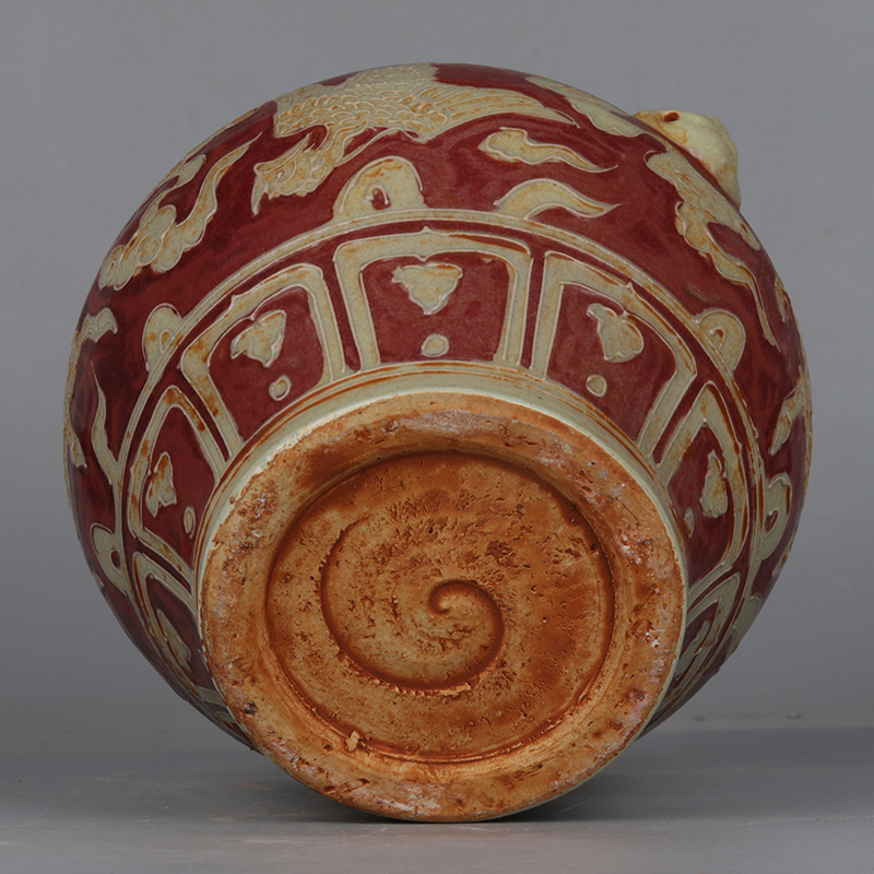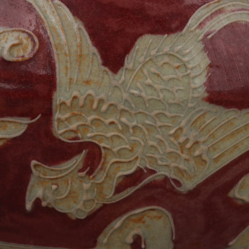 Imitation Yuan Dynasty unearthed underglaze red carving unicorn phoenix pattern weathered amphora antique antique collection ornaments antique porcelain