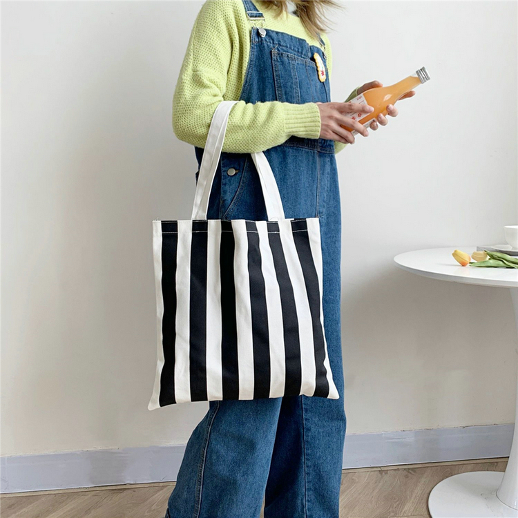 Striped plain cloth bag black and white striped plain cloth bag blue and white