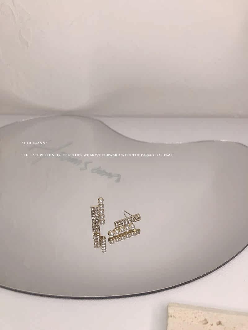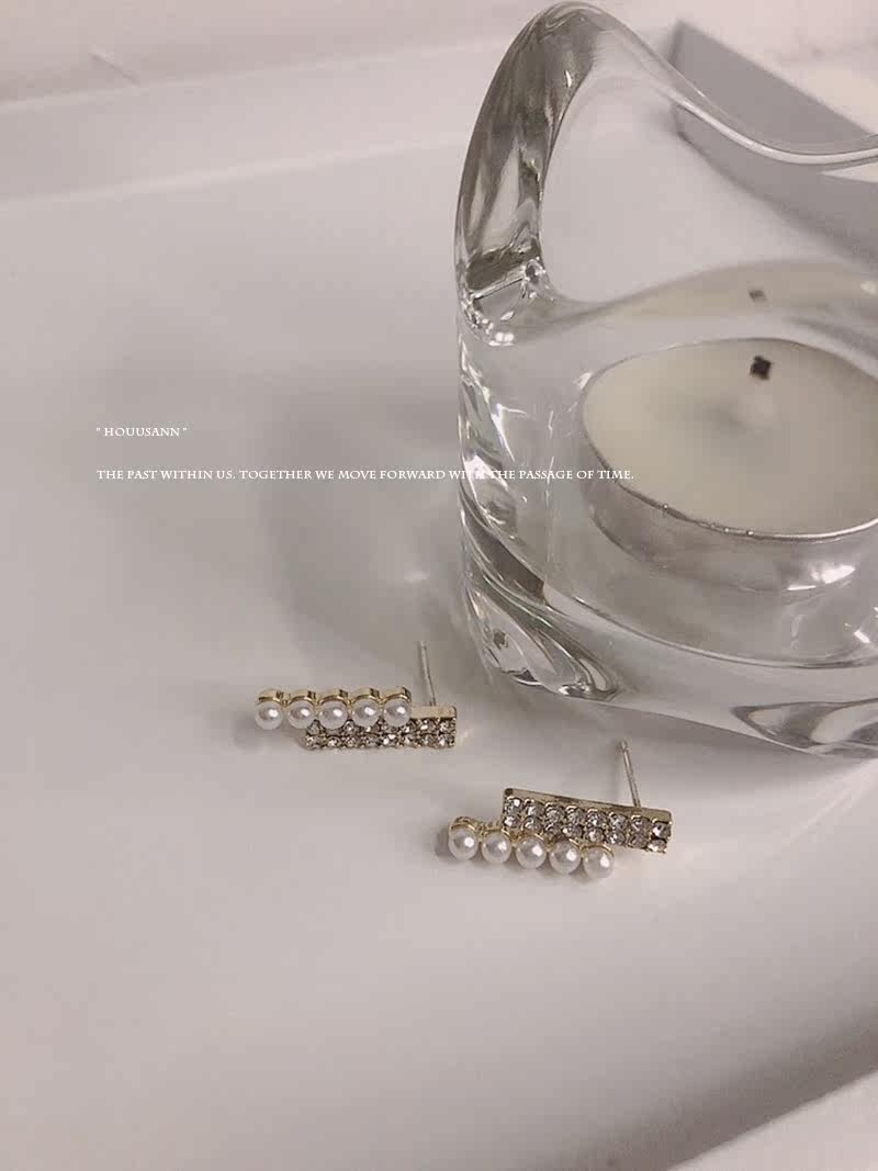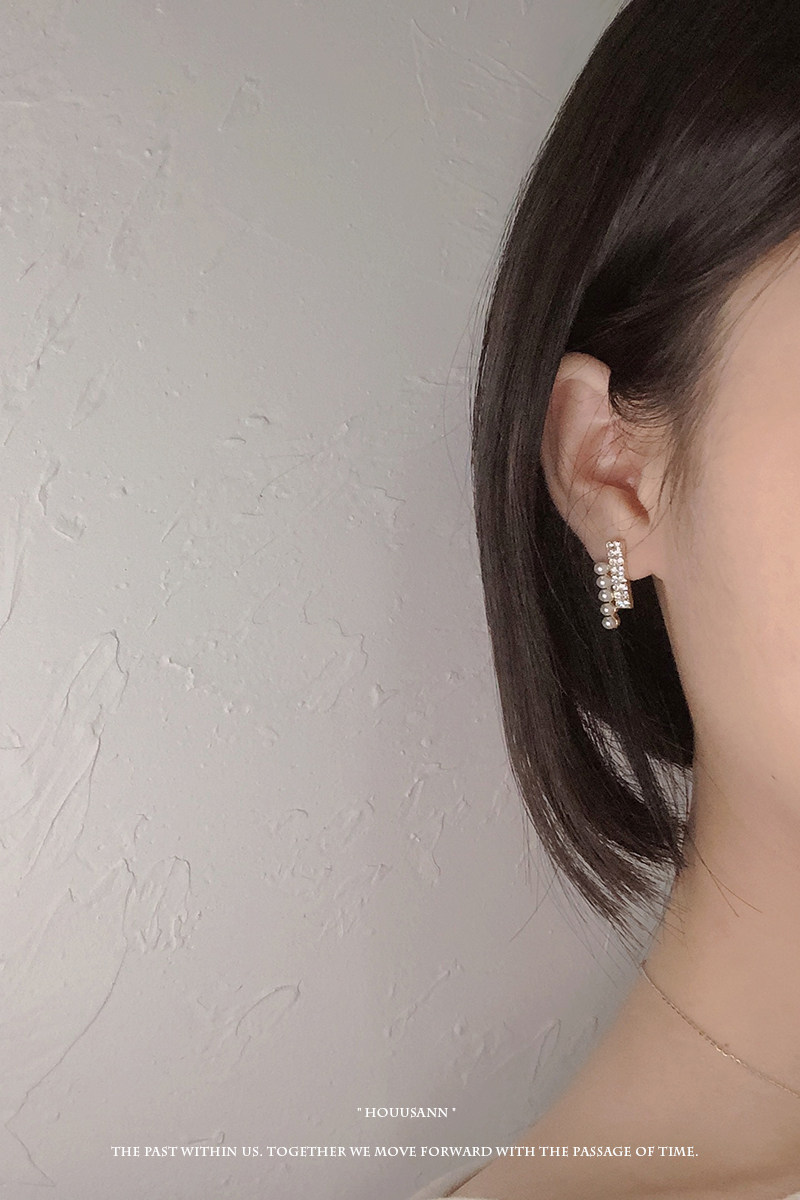 s925 Pure silver pearl water drill ear nails in simple cold earring round face appears thin ear decorations female allergy
