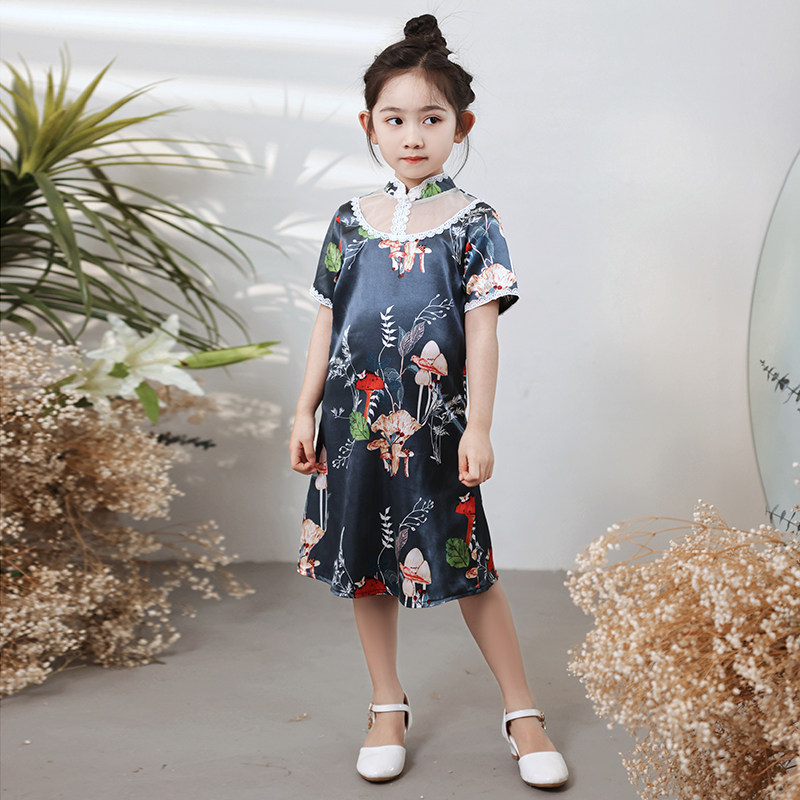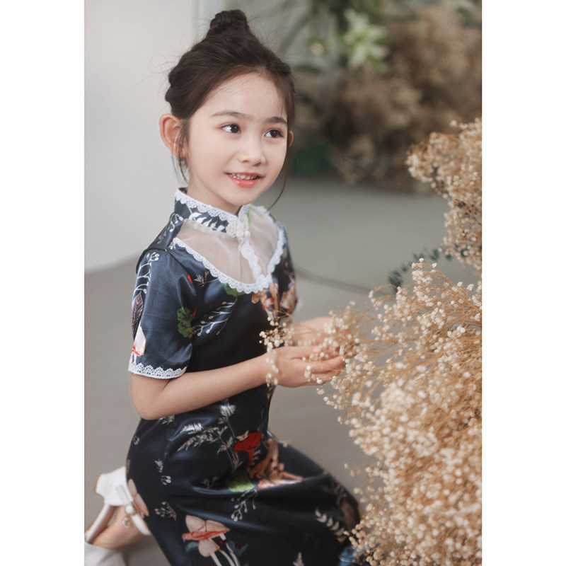 Girls' little cheongsam autumn children's Hanfu Chinese style little girl improved catwalk national trend thin gray dress