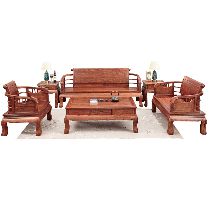 Kyung Festive Year National Standard Red Wood Sofa Hedgehog Purple Sandalwood Yellow Flower Pear Wood Furniture Chinese Living Room Roll Book Sofa Chair Combination