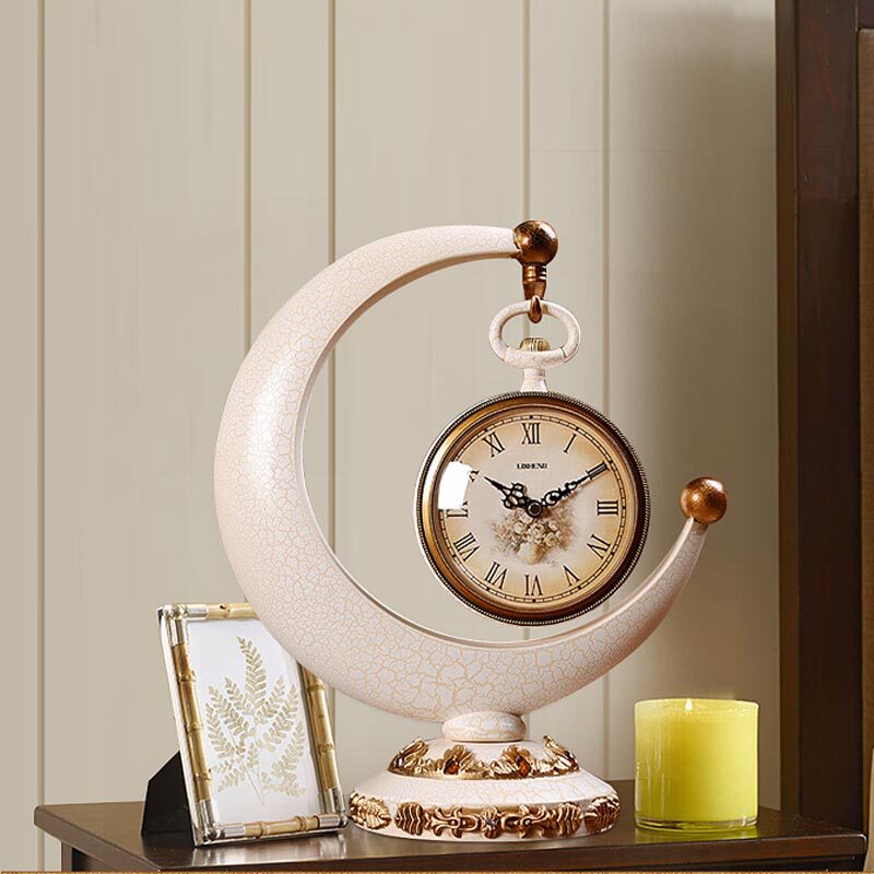 Living room clock table clock creative retro sitting clock simple fashion clock desktop pendulum clock ornaments European-style home table clock
