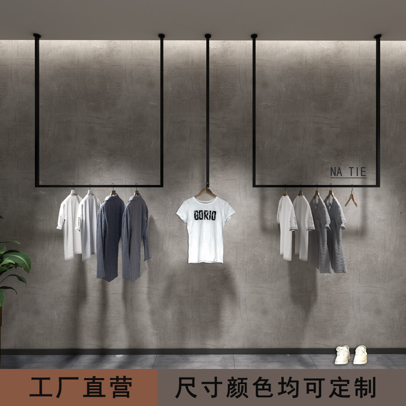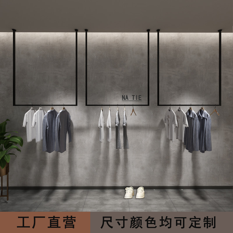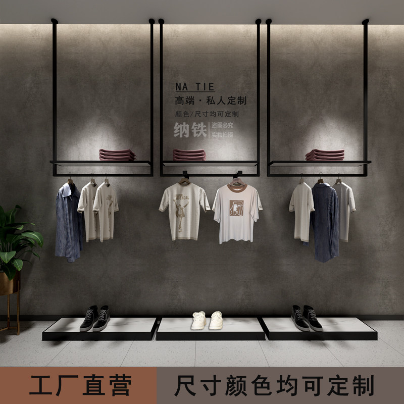 Clothing store display rack display rack hanging men's and women's clothing store shelves wall hangers hanging wedding shelves Black