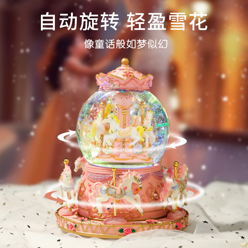 Music Box Eight soundboxes Rotating Trojan Horse Birthday Presents Female Water Crystal Ball Children Friends Girls Little Magic Box Girl-Taobao