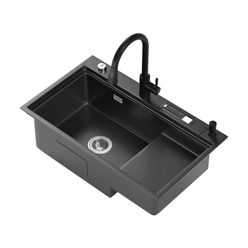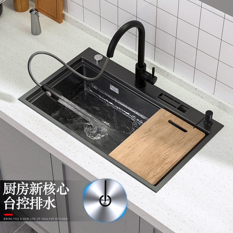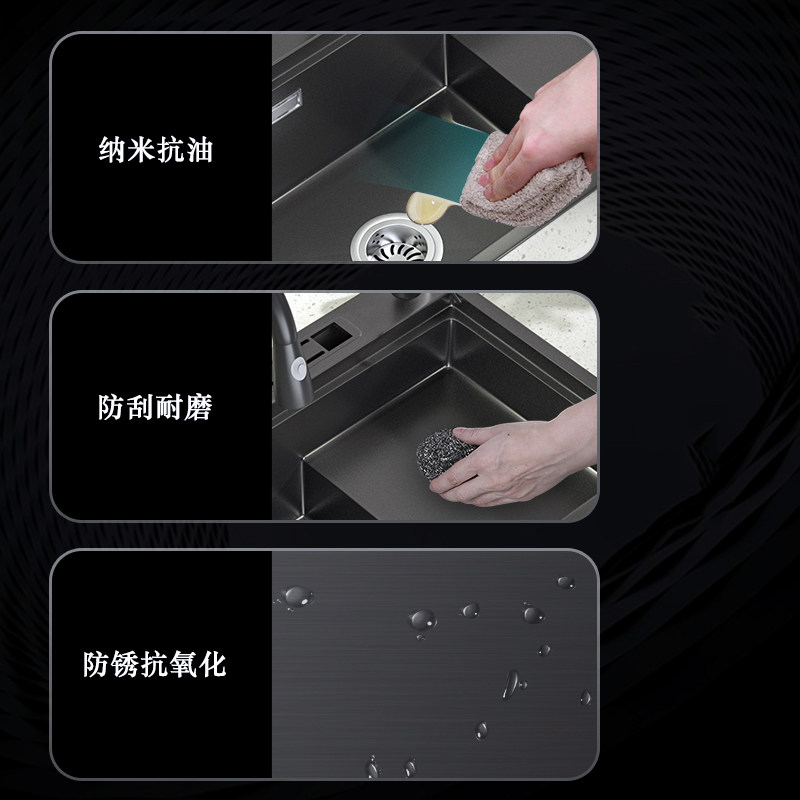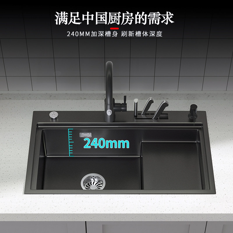 Rock Elephant Nano Stepped Sink Single Sink Black Terrace Basin Dishwashing Pool 304 Stainless Steel Kitchen Wash Basin