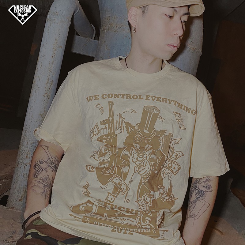 OGMC motorcycle style tide brand machine gun wolf jungle khaki apricot submachine gun summer loose short-sleeved half-sleeve T-shirt