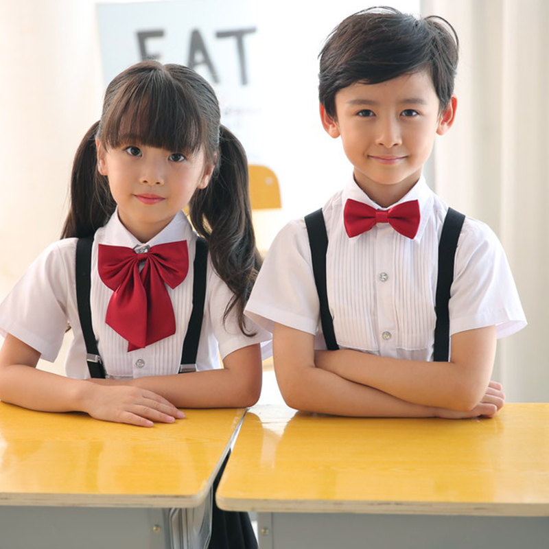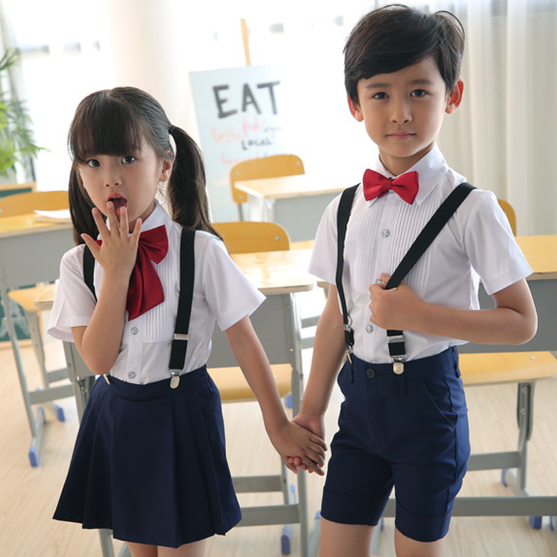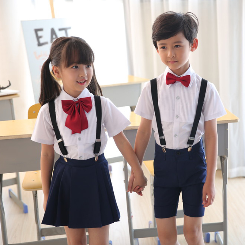 Black boy suit (shirt, shorts, suspenders, bow tie, free socks) Black girl suit (shirt, skirt, suspenders, bow tie, free socks) Navy blue boy suit (shirt shorts
