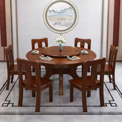 Walnut solid wood dining chair combination modern Chinese dining room table household round with turntable 8-person round table