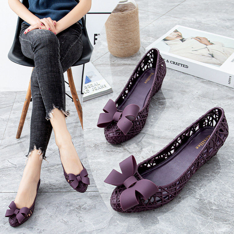 Plastic Slopes Heel Rain Shoes Women Summer Fashion Models Hollow Breathable Jelly Waterproof Single Shoes Inner Heightening Non-slip Working Sandals