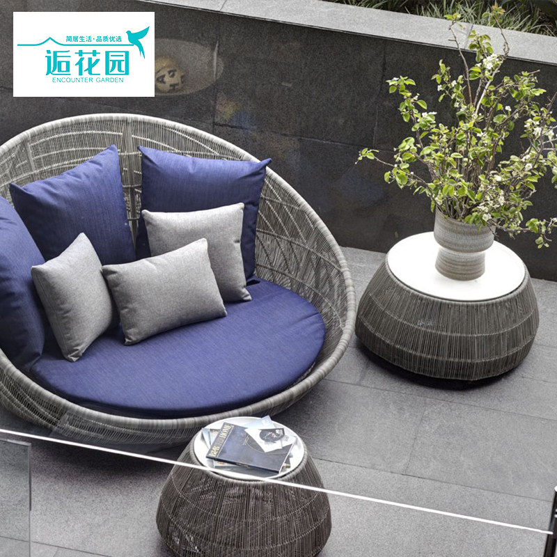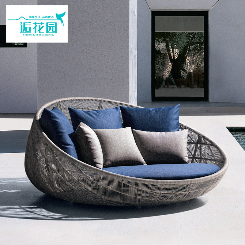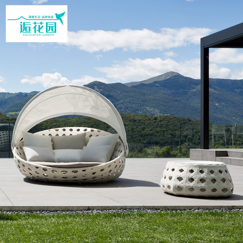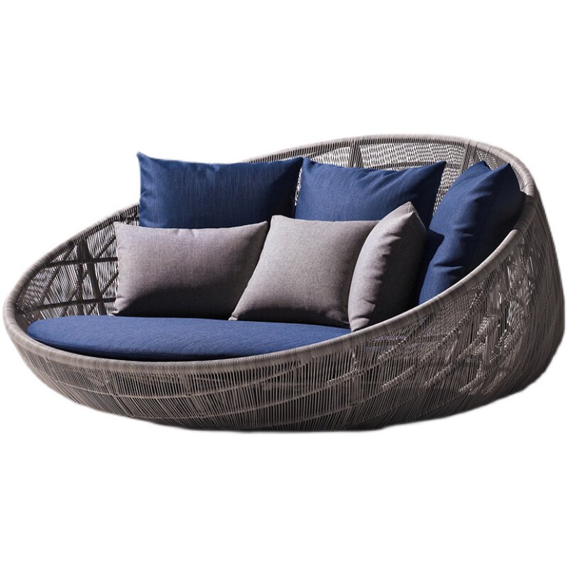 Outdoor Rattan Round Bed Terrace Lying Bed Bird's Nest Bed Nordic Creative Garden Recliner Courtyard Leisure Rattan Beach Bed