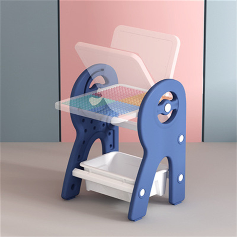 Blue (drawing board building block table) pink (drawing board building block table) green (drawing board building block table) white (drawing board building block table)