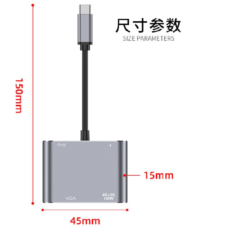 Type-C turn VGA expansion dock HDMI converter 4 in 1 USB3 0 phone connected to computer screen