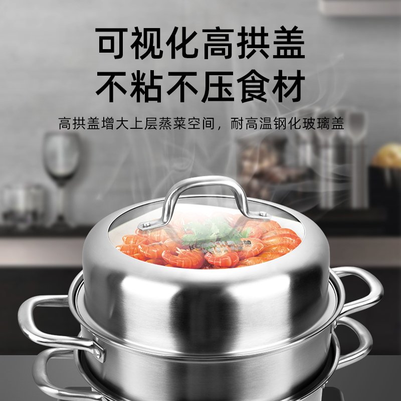 Kangbach steamer 304 stainless steel thickened three-layer steamer steamed buns home cage drawer four-layer can be cooked in one
