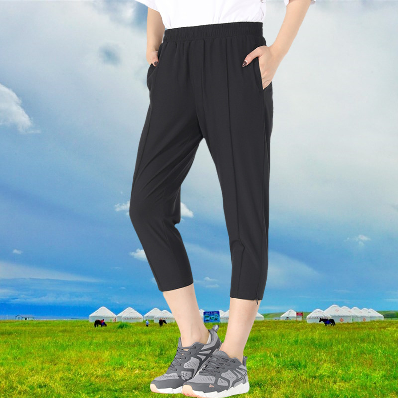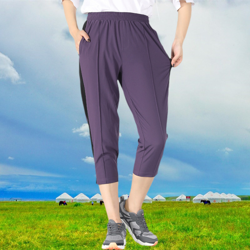 Tantuo women's quick-drying cropped pants summer outdoor sports mountaineering hiking ice silk elastic thin casual pants comfortable