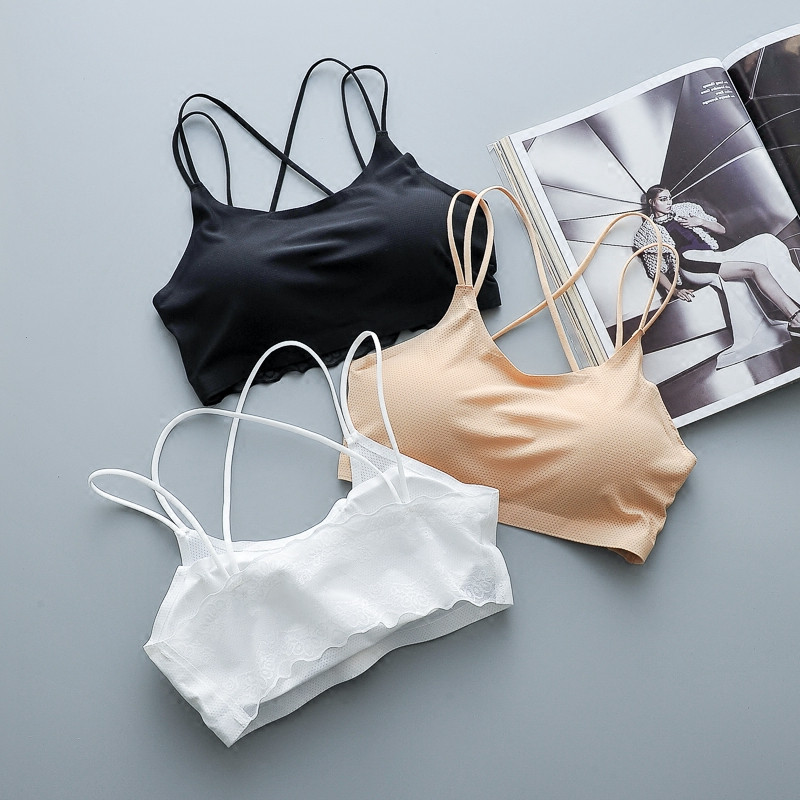 Summer beauty back smeared ice silk breathable with chest cushion lingerie bra Anti-walking light bra beating bottom to wrap up
