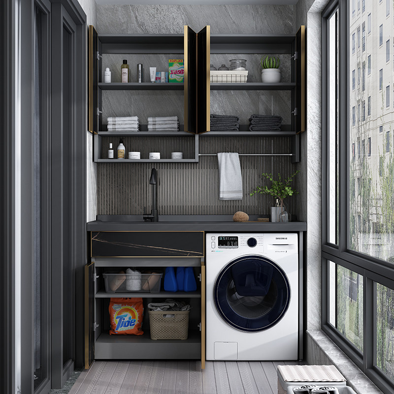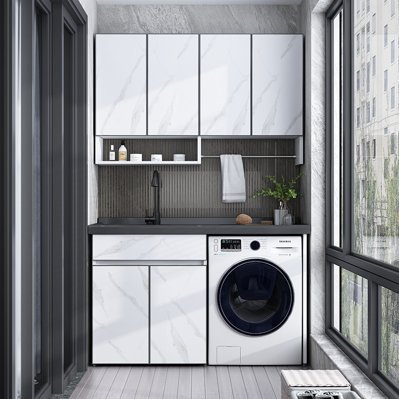 Integrated balcony drum washing machine custom cabinet rock basin with washboard basin combination laundry wardrobe companion space aluminum