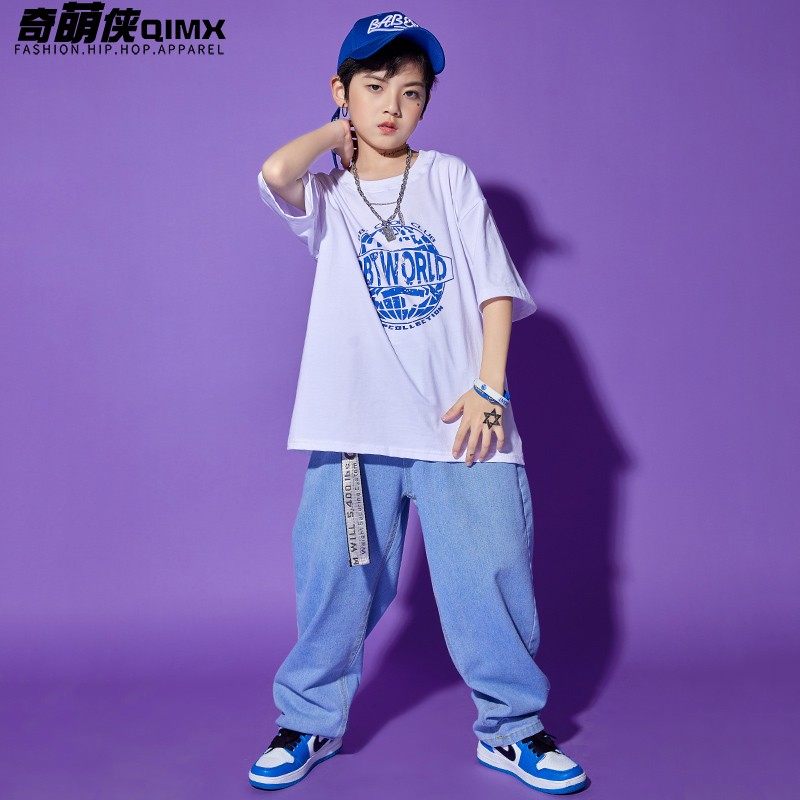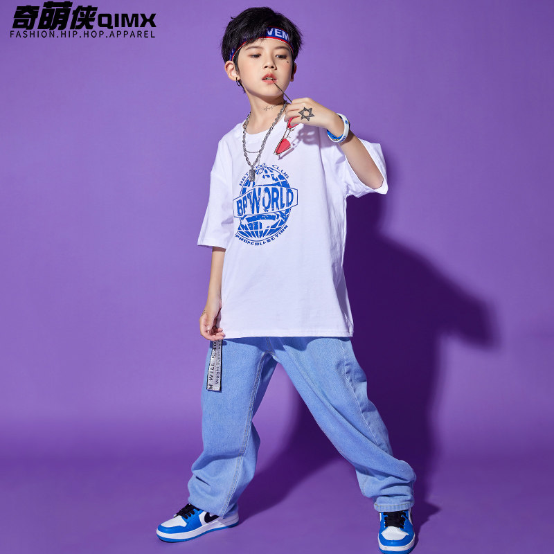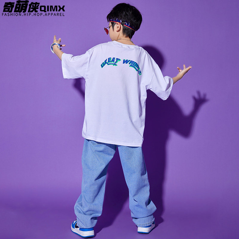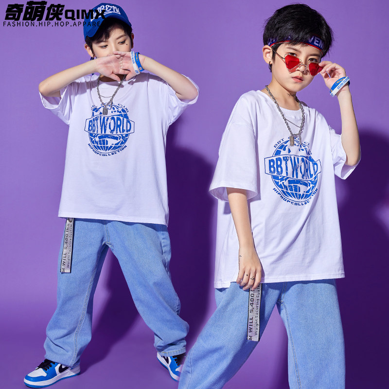 Children's street dance choking boy hip hop wind loose print short sleeve hiphop tide card children cool tide dress girl