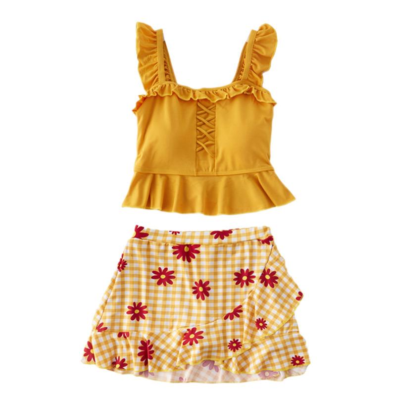 CK QIOM swimsuit women 2021 New Korean cute sweet thin belly cover fairy fan split skirt swimwear