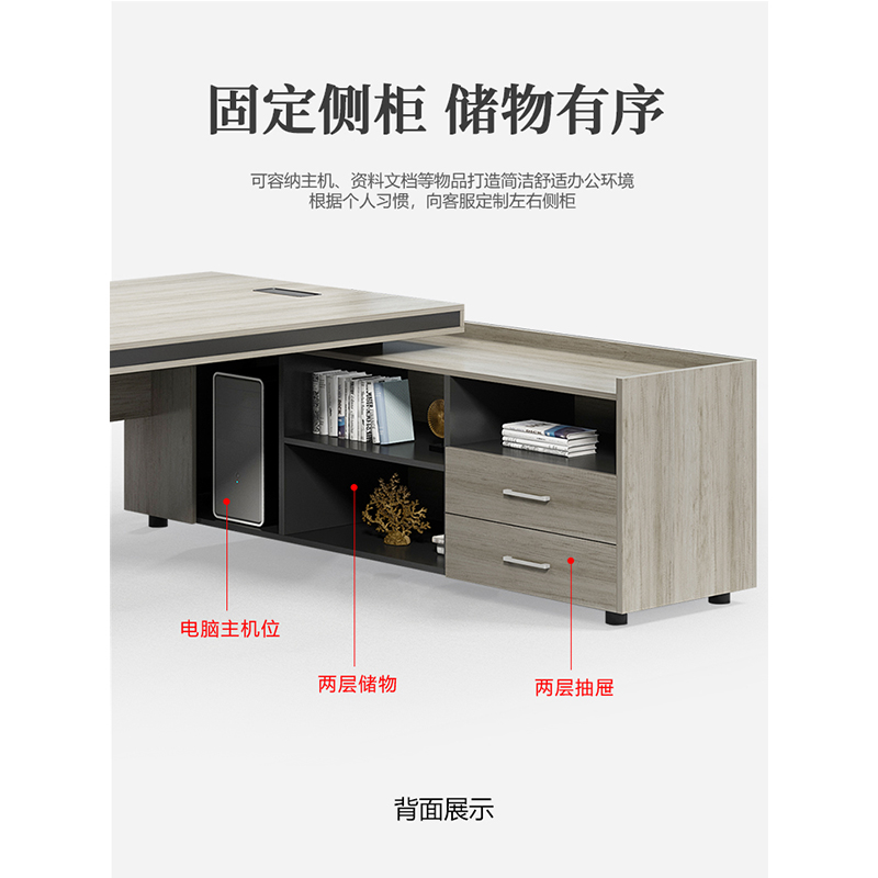 1400*700 desk (excluding cabinet) 1600*800 desk (excluding cabinet) total length 1600 boss desk with long side cabinet Total length 1800 boss desk with long side