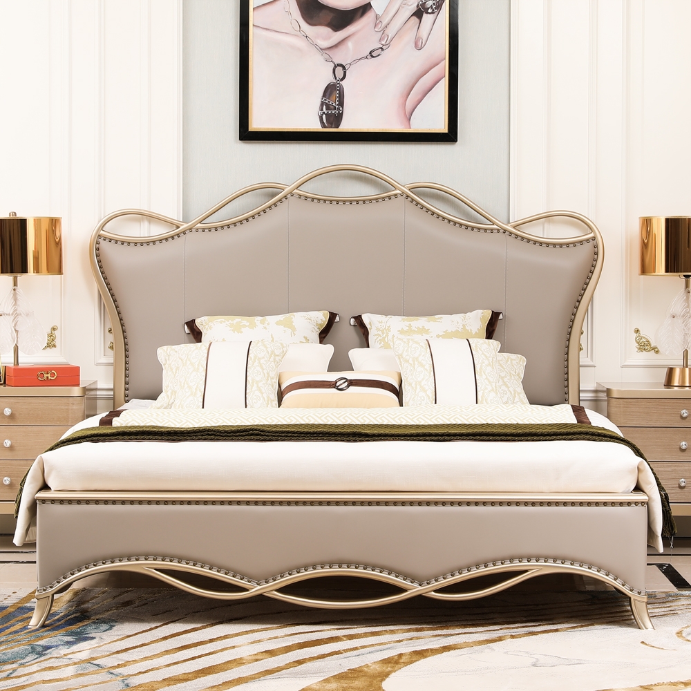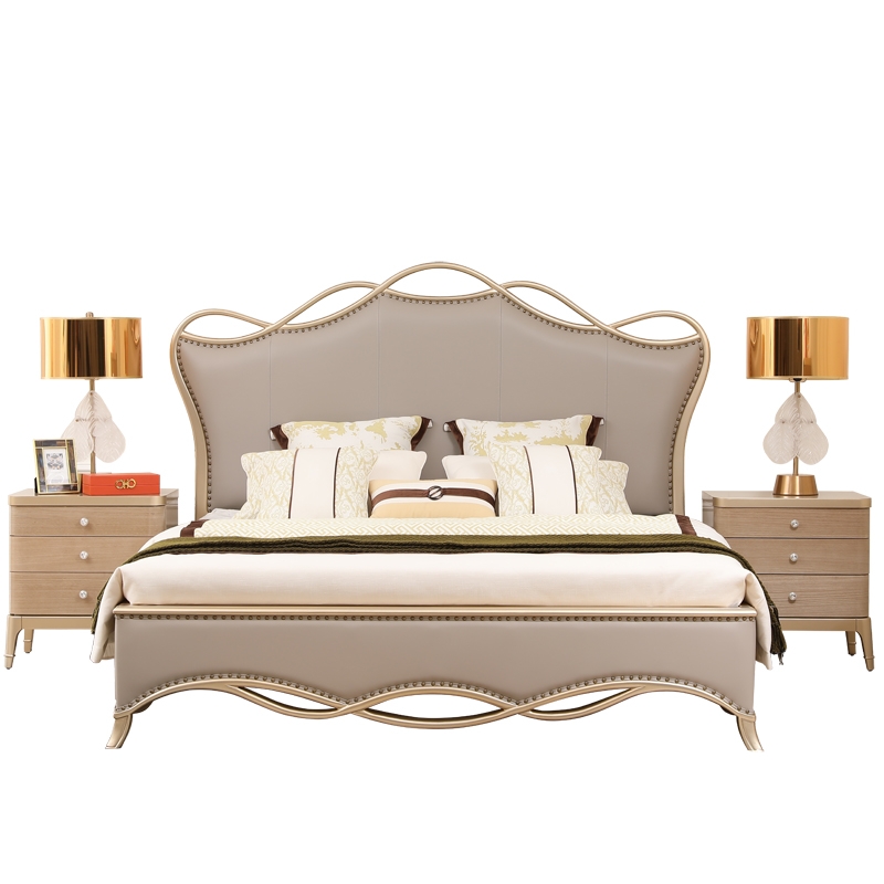 American Light Extravagant Solid Wood Double Bed 1 8 Master sleeper INS Wedding Bed Villa Champagne Gold Leather Art Fabric Eurobed Head Cabinet