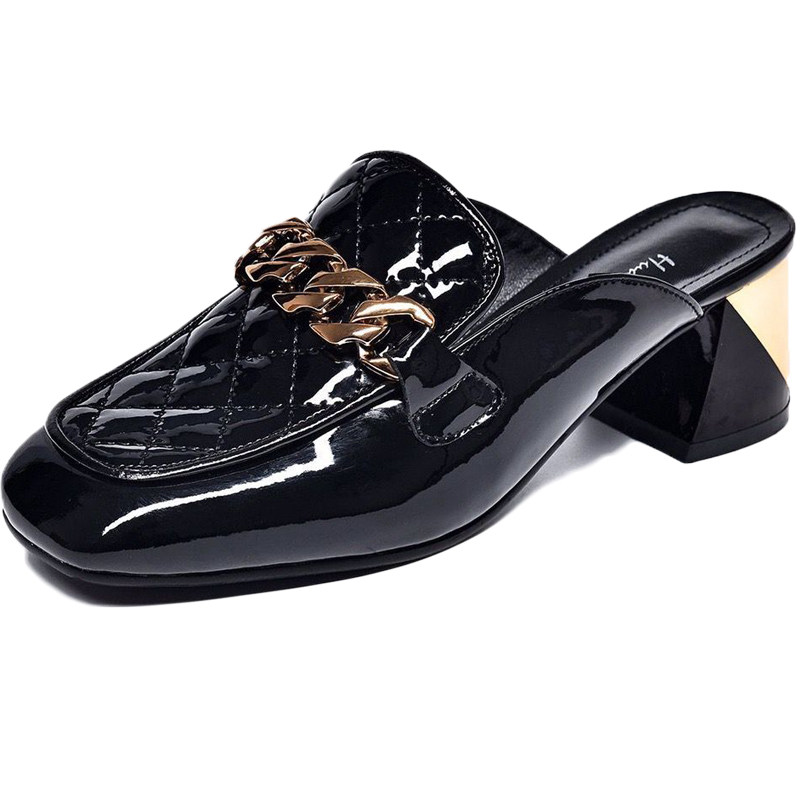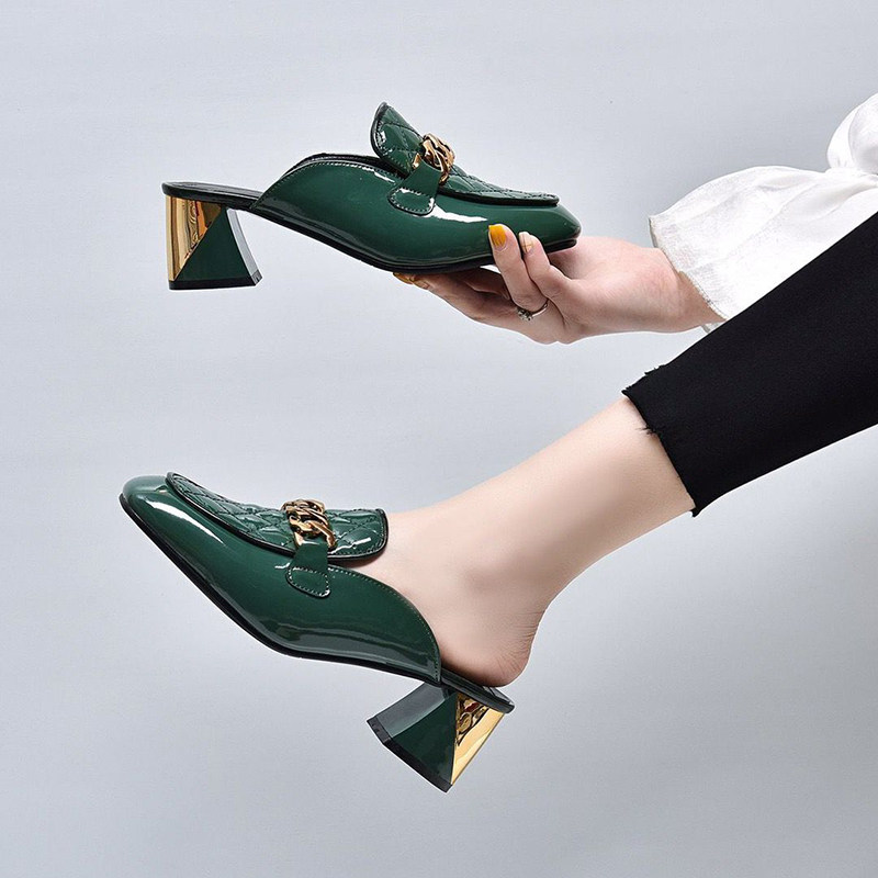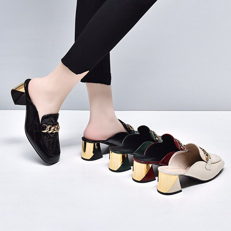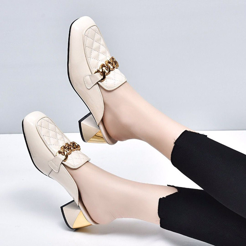 Baotou Half slippers female 2022 New female summer genuine leather cool drag coarse heel and square head semi-tugging Mueller shoes outside wearing single shoes