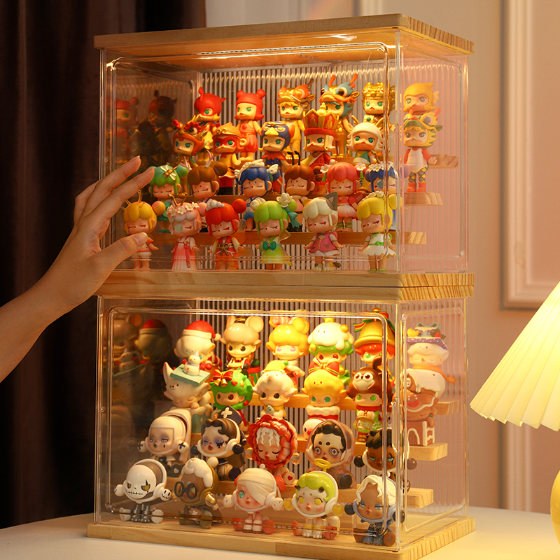 Model display box blind box storage layer shelf bubble Matt doll Lego doll doll cabinet transparent with lamp dust cover
